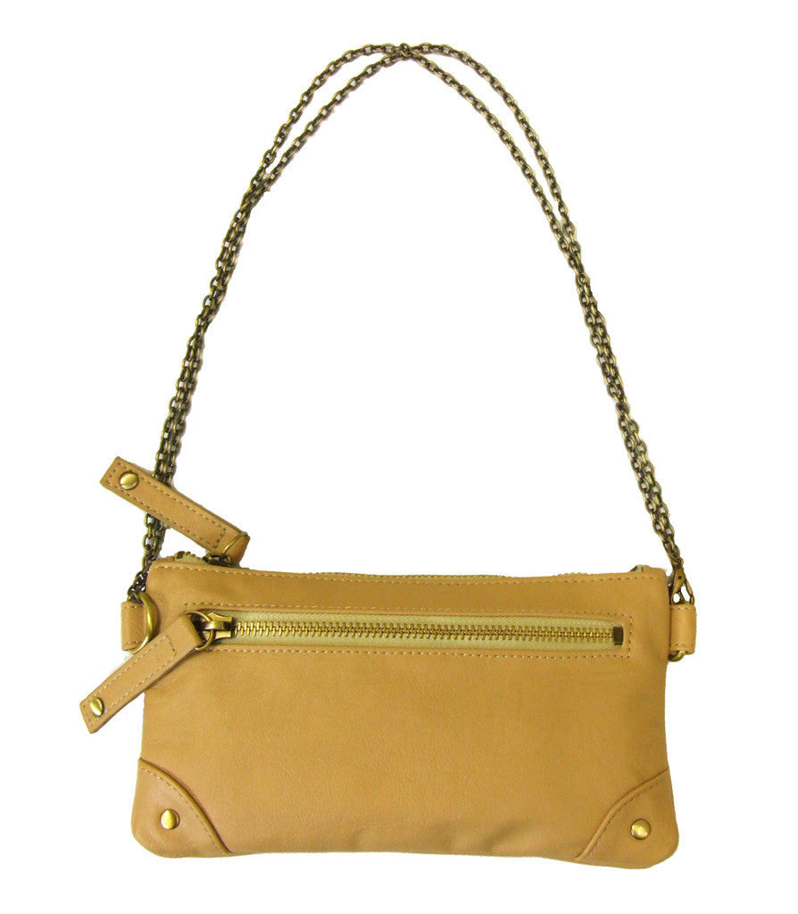 Slim cross body pursette for really trimmed down essentials. Detachable chain shoulder strap adjusts to many lengths and converts to a clutch, wallet or cosmetic bag. Coordinating floral print lining. 8.25"w x 4.5"h