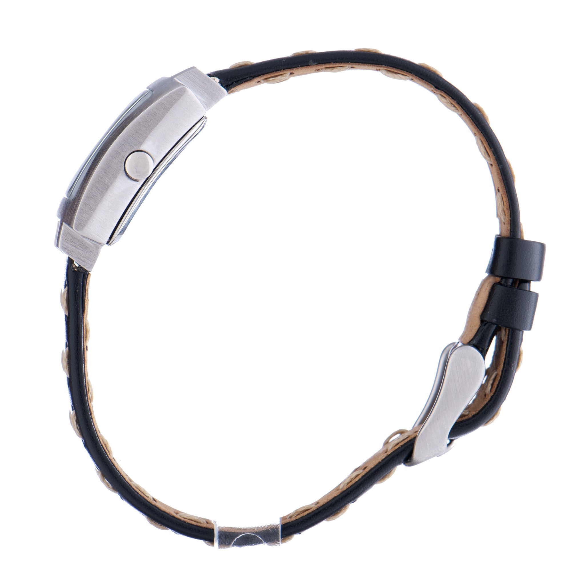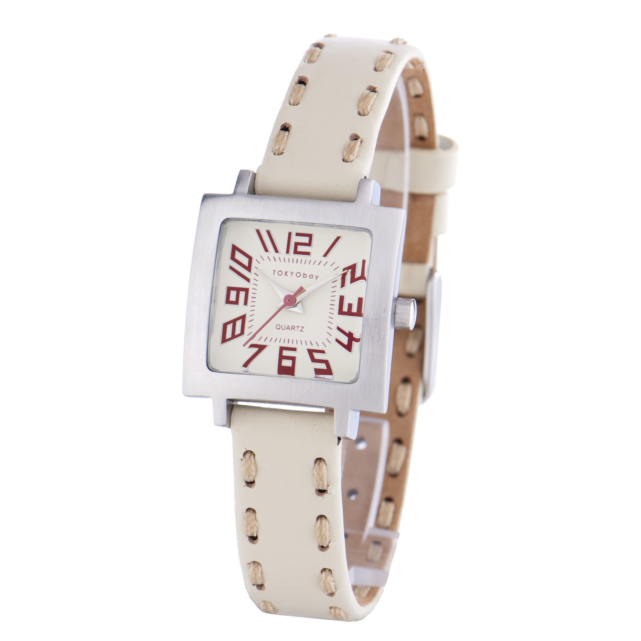 The petite version of our popular Tram watch that was featured in Oprah Magazine. Feminine, square two-toned dial with retro feel. Smooth leather strap and heavy top stitch detail. Case size is 7/8".